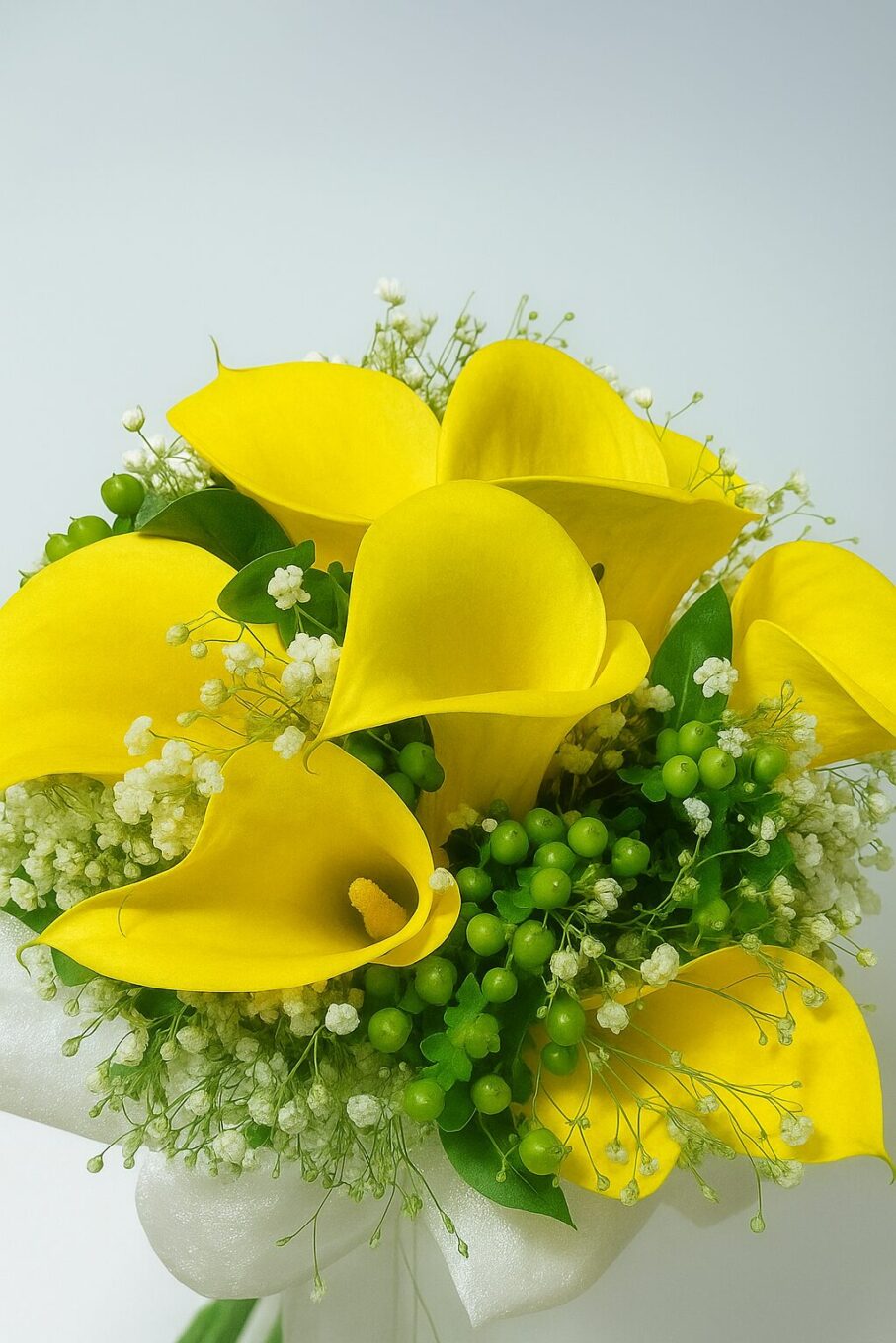 Experience the perfect harmony of elegance and natural beauty with our Bridal Bouquet Taganga. Handcrafted with premium Colombian-grown mini calla lilies, delicate hypericum berries, and fresh greenery, this bouquet is more than a floral arrangement—it is a statement of refined love and timeless style.